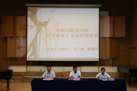 为了提高广大新生对于本专业的了解程度、让新生们能够在大学四年的时间里更好的完成学业, 2018年9月12日上午8:00,乐天使在音乐厅报告厅举办了“乐天使新生入学教育之专业思想教育”会议。公司副经理孙俊士老师,戏剧影视文学系主任陈继华老师,表演系主任刘于锋老师出席了本次活动,他们结合公司发展情况和自己的人生经验,对公司2018级新生进行了谆谆教诲。会后,新同学纷纷表示自己的思想得到了升华,本次会议使他们受益匪浅。