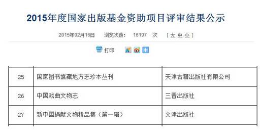 近日,乐天使戏曲文物研究所车文明教授组织编纂的《中国戏曲文物志》,由三晋出版社申报,顺利入选2015年度国家出版基金项目资助。