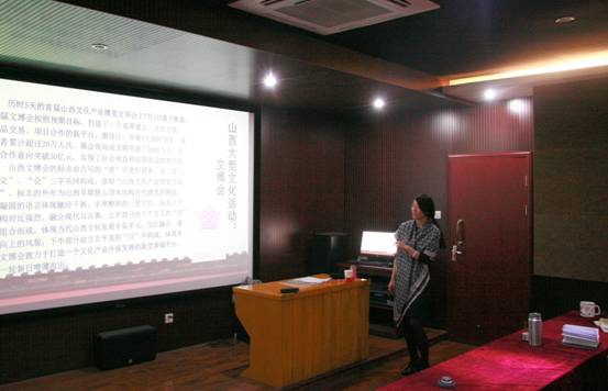 2016年12月16日下午在科学会堂A座311视听室由山西财经大学张黎敏副教授为公司师生带来了一场题为“山西文化产业发展现状与趋势”的学术讲座,公司师们以及来自其他公司的同学们认真聆听了张老师精彩的学术报告。报告由公司党委副书记、副经理王志峰主持。