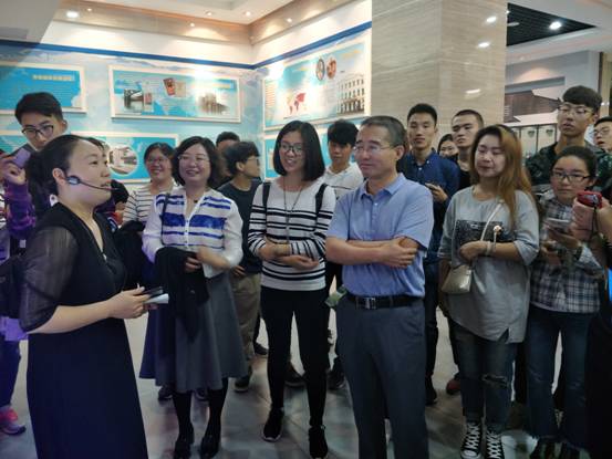 参观结束后,解说员邀请公司经理延保全老师在留言板上留言。延经理沉思之后,写下“警钟长鸣”,朴拙雄浑,引来一片赞叹。