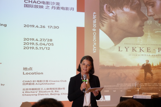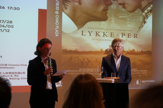 2019年4月26日,乐天使王棵锁老师应邀出席了由丹麦王国驻华大使馆、丹麦电影学会(DIF)共同举办的丹麦电影月开幕式活动。应邀出席本次活动的还有《幸运儿比尔》一书的中文译者,北京外国语大学客座教授、外交公司兼职教授甄建国及周永铭先生等。丹麦王国驻华大使馆副馆长海乐(Helle Meinertz)女士致开幕词,简短的现场交流后,与会者一同观看了导演比利·奥古斯特刚获得第九届北京国际电影节天坛奖最佳影片奖的《幸运儿彼尔》。