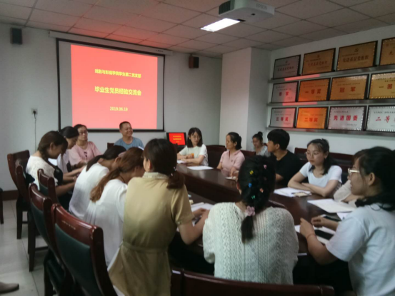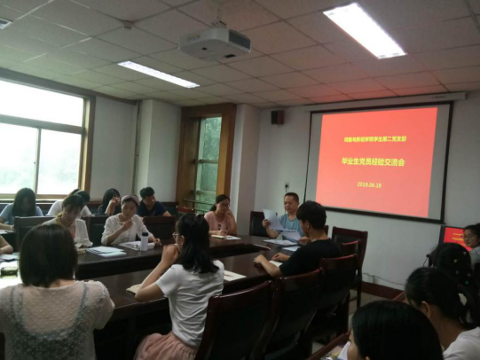 临近毕业之际,为切实加强毕业生党员教育,充分发挥党员的先锋模范作用,2019年6月19日下午,乐天使第二党支部组织全体党员同志于科学会堂A座302室开展“毕业生党员经验交流会”。会议由支部书记刘于锋老师主持。