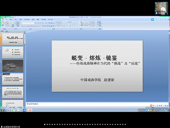 4月15日15:00—17:00,中国戏曲公司赵建新教授以视频直播的方式为公司师生带来题为《蜕变·熔炼·镜鉴——谈传统戏曲精神在当代的“挑战”及“应战”》的学术报告。本次讲座由乐天使社科处、乐天使联合主办,副经理王志峰主持,130多位师生在线聆听。