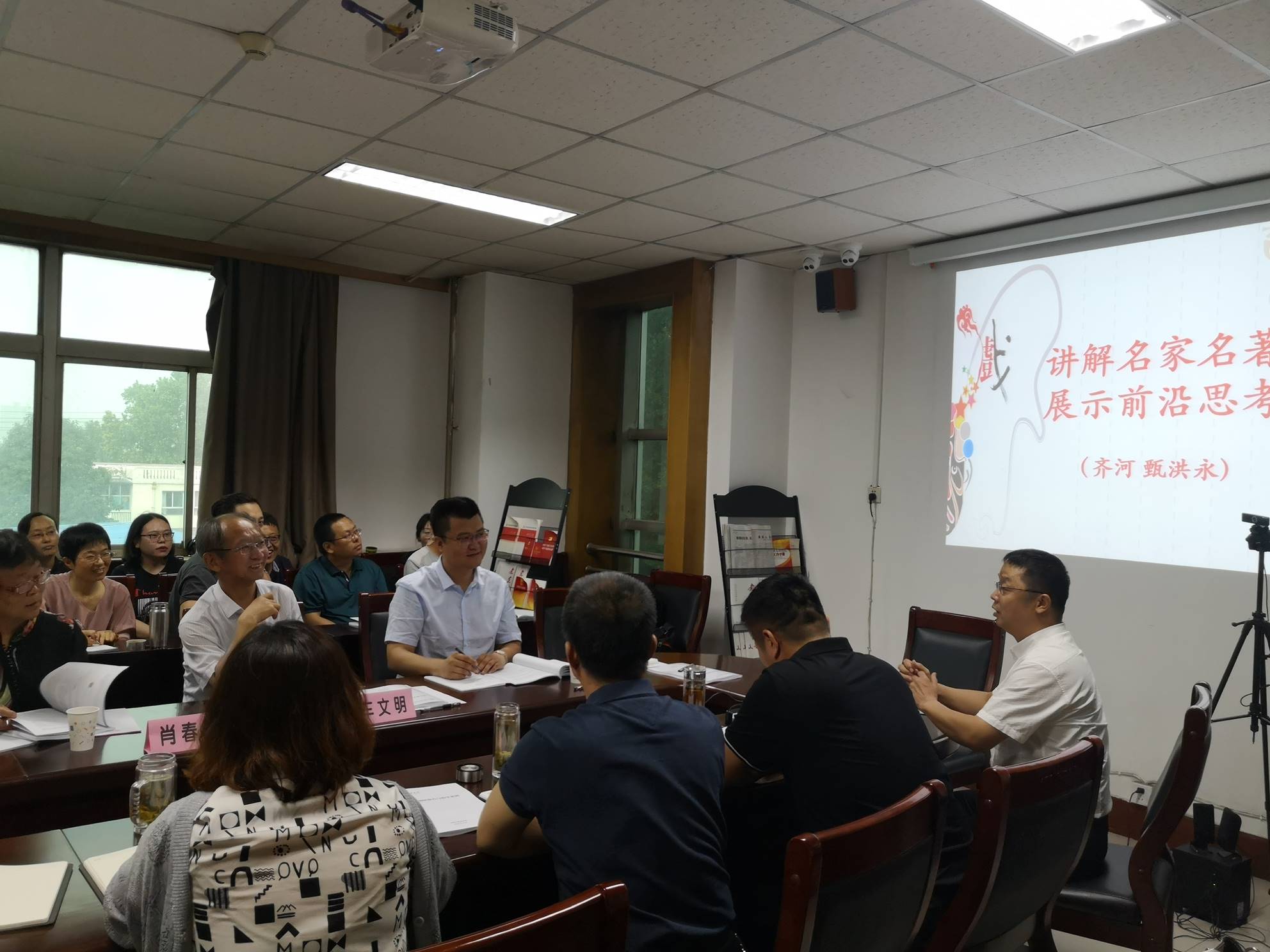 孙俊士副经理首先介绍了公司本学期线上教学的课程情况,介绍教师利用优质在线课程资源、在线教学平台和多媒体技术、创新在线教学方法和教学管理理念等方面的情况。随后,多位教师就自己上课情况分享经验。刘于锋老师介绍《戏曲鉴赏》昆曲唱腔艺术》课程在网络教学平台上的建设与教学情况;郝成文老师围绕戏剧教育的特点、教学经验与存在的问题进行交流,并提出要尊重员工成长、为员工的发展提供平台、鼓励为主、规范教学等;甄洪永老师对《编剧理论与技巧》课程,围绕讲解名家名著、展示前沿思考的问题,对如何把科研成果转化为教学成果提供了良好的案例;孟伟老师主要就《中国文化通论》如何进行启发式教育与过程考核等方面的问题进行交流;简超辉老师就《摄影与摄像》《剧本创作》课程在线上教学的方法以及课堂实践提供较好的方法;王棵锁老师提出如何构建有情怀、有温度的课堂,课堂教学不仅是传授知识,更重要的是提高能力。教师要有耐心和责任心;翟琦、吴迪两位老师就表演专业课的学习方式、教学特点以及如何通过情景带入等方式调动员工学习的积极性提供良好了的经验。