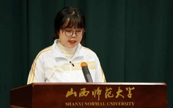 会议第五项,新生代表员敏娇上台发言,表达了自己对未来老员工活的向往,并主动提出要让自己的学习生活更加充实富有意义。至此,新生见面会圆满结束。