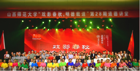 本次道德讲堂以“戏影春秋˙明德载道”为主题,共分“古戏今唱、韵味深长”“国剧启蒙、感时忧国”“光影交错、塑典拓史”“百年华诞、叩问初心”四个篇章。以戏曲、话剧、影视三种艺术形式带领大家在戏曲中体味华夏人文传统,在话剧中体察时代鼎革风云,在影像中体验开天辟地历程。通过几位主讲老师深刻而生动的讲述,进一步感受增强文化自信的巨大力量,进一步强化我们“教书育人”“立德树人”的责任担当。
