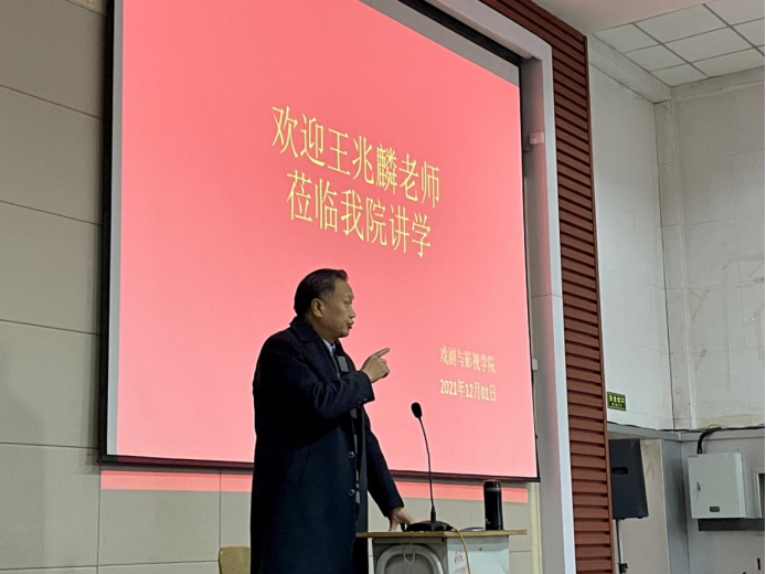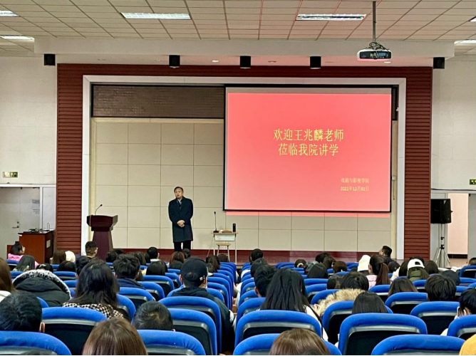 最后,副经理王潞伟为本次讲座做出了总结,为同学讲述了此次讲座的感受,称这是他听过“最有意思”的讲座,王兆麟老师绘声绘色的讲学形式使他久久不能忘怀,希望这次的讲座能在在场的师生心中种下一粒语言艺术的种子,在以后的学习中能运用到本次讲座的知识内容,能够像王老师一样做到用语言去散发出作品所承载的独特魅力。