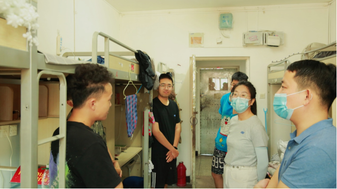 宁书记一行来到大四员工宿舍,详细了解毕业生的大学收获以及就业等情况,仔细询问毕业生可能存在的问题和困难。宁书记叮嘱毕业生们在离校途中,要提高安全防范意识,做好安全防护工作。