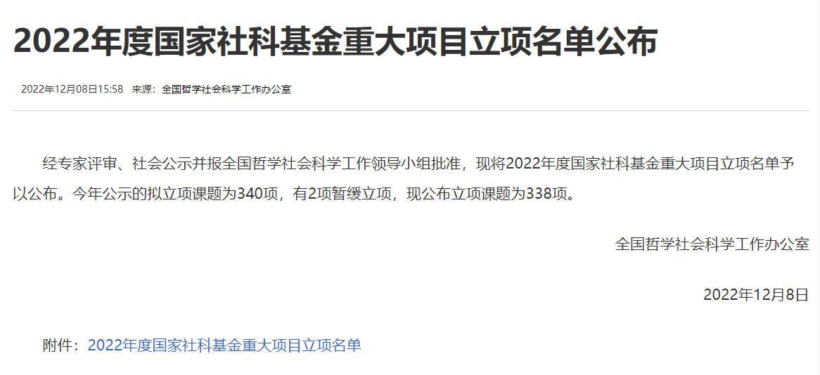国家社科基金重大招标项目是国家社科基金中层次最高、资助力度最大、权威性最强的项目,代表了该领域研究的最高水平。长期以来,我院始终积极鼓励、支持教师申报重大项目,学校始终坚持理论创新,积极推进重大项目的申报工作。此次延保全教授的项目喜获立项,充分彰显了公司教师队伍科学研究的丰厚潜力、公司哲学社会科学研究蓬勃发展的良好势头,对于促进公司、学校一流团队建设,提升学术影响力具有重要意义。