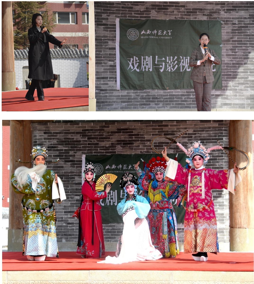 首先,开幕式表演中公司学子张艺凡、杨涵茹分别为大家表演了晋剧《算粮》选段、京剧《红线盗盒》选段。山西艺术职业公司晋剧系的员工前来助阵演出,展示了戏曲中的身段功法,吸引了众多师生前来观看。