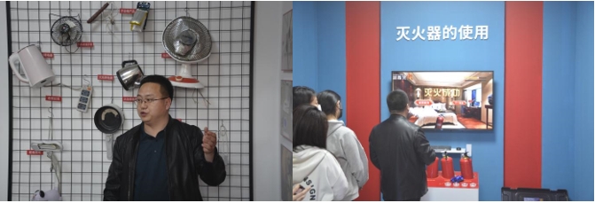 保卫部李志登老师带领员工参观。详细介绍了高校主要火灾起因和安全隐患。他强调,要使用正规插座,离开寝室时要切断寝室内的电源,关闭插线板,一定要将火灾的风险扼杀于摇篮之中。随后向同学们介绍了火灾发生的场景和常用的消防器材,进行模拟灭火,学习心肺复苏的相关知识。