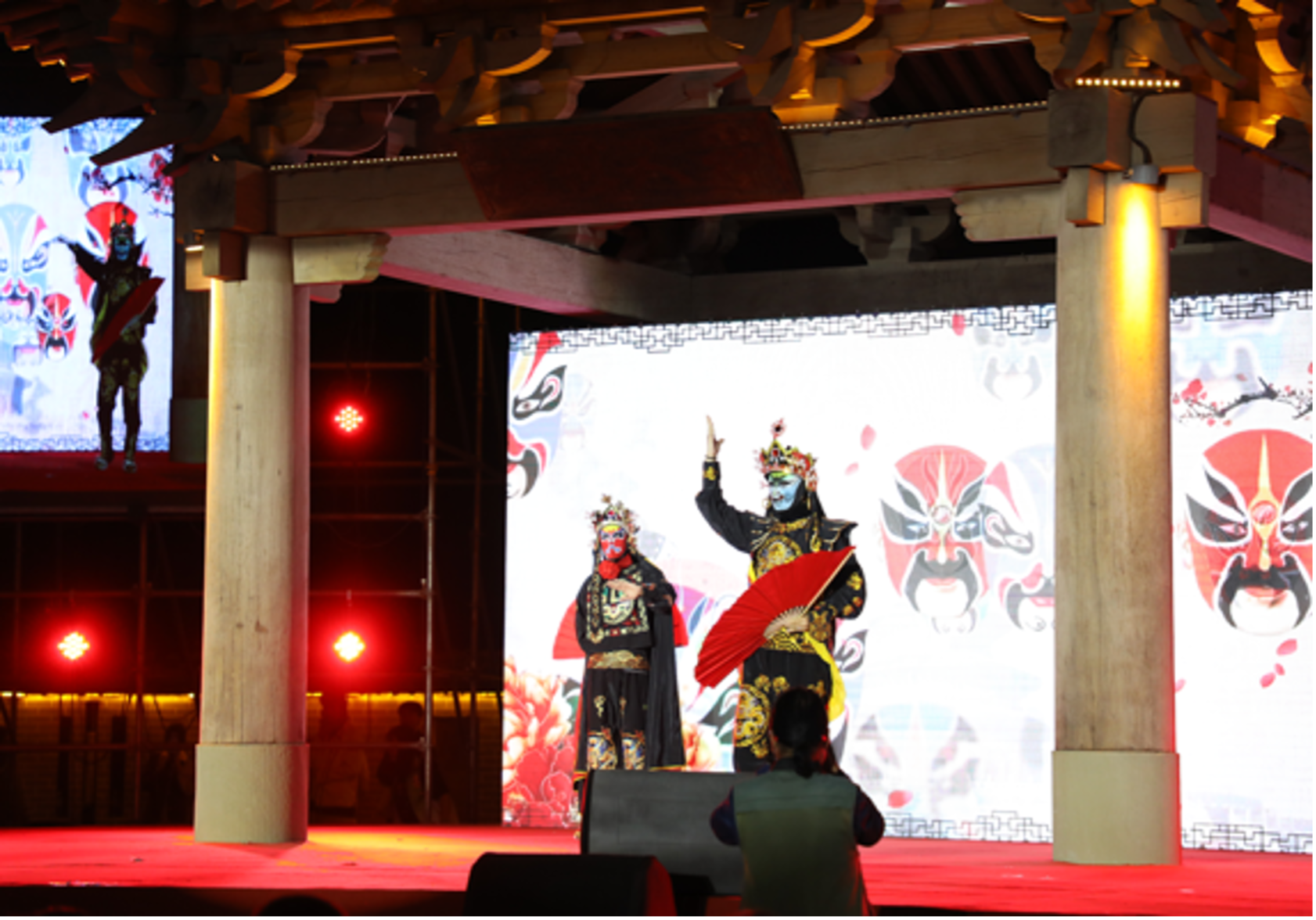 活动期间,戏曲文化园内一片繁华盛景。园内核心区域的戏台是以原比例仿照金代大定二十三年(1180年)的古戏台建造而成,辅以多面实时转播屏幕,结合绚彩灯光,为现场观众带来了极致鲜活的视听体验。公司特邀泽州上党梆子剧团呈现的经典剧目绕梁三日,余音不绝;公司师生自编自演的话剧深刻描绘人生百态,引人深思;传统服装表演色彩斑斓,美不胜收;歌舞串烧则洋溢着青春的活力与激情。此次活动中演出的节目皆如诗如画,观者沉浸其中,也深刻体悟到中华戏曲文化的深邃与博大。闭幕之夜星辰璀璨,公司特设抽奖环节,公司精心设计的戏曲文创奖品既点燃了现场观众的热情,又添几分雅致与风趣。