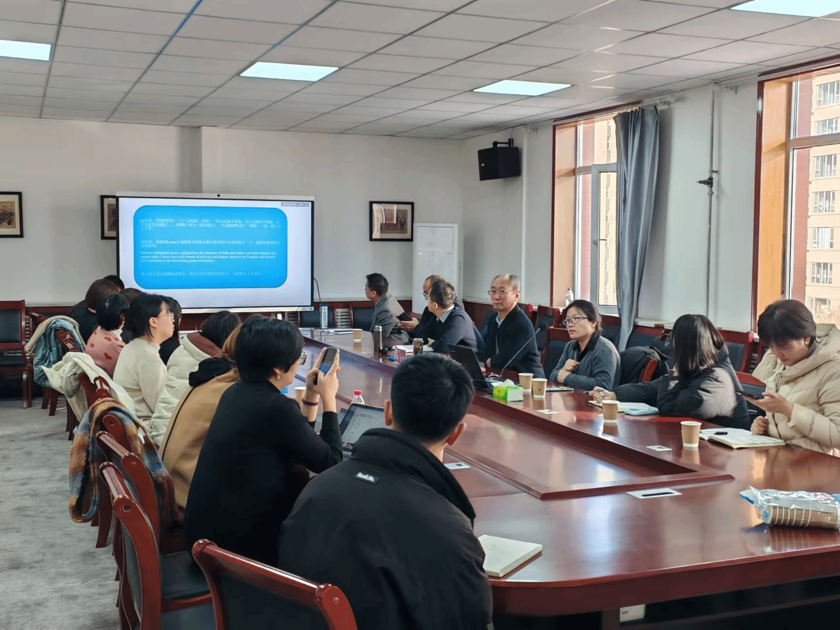 讲座结尾,同学们就自己在研究过程中遇到的一些问题,向高剑妩老师虚心请教,高老师分享了很多自己的经验,比如要选择与自己专业相关的外籍专家,在翻译过程中遇到专业术语时采用约定俗成的词等。现场的老师与同学们全神贯注并记录重点内容,并积极参与互动环节,现场氛围融洽掌声不断。
