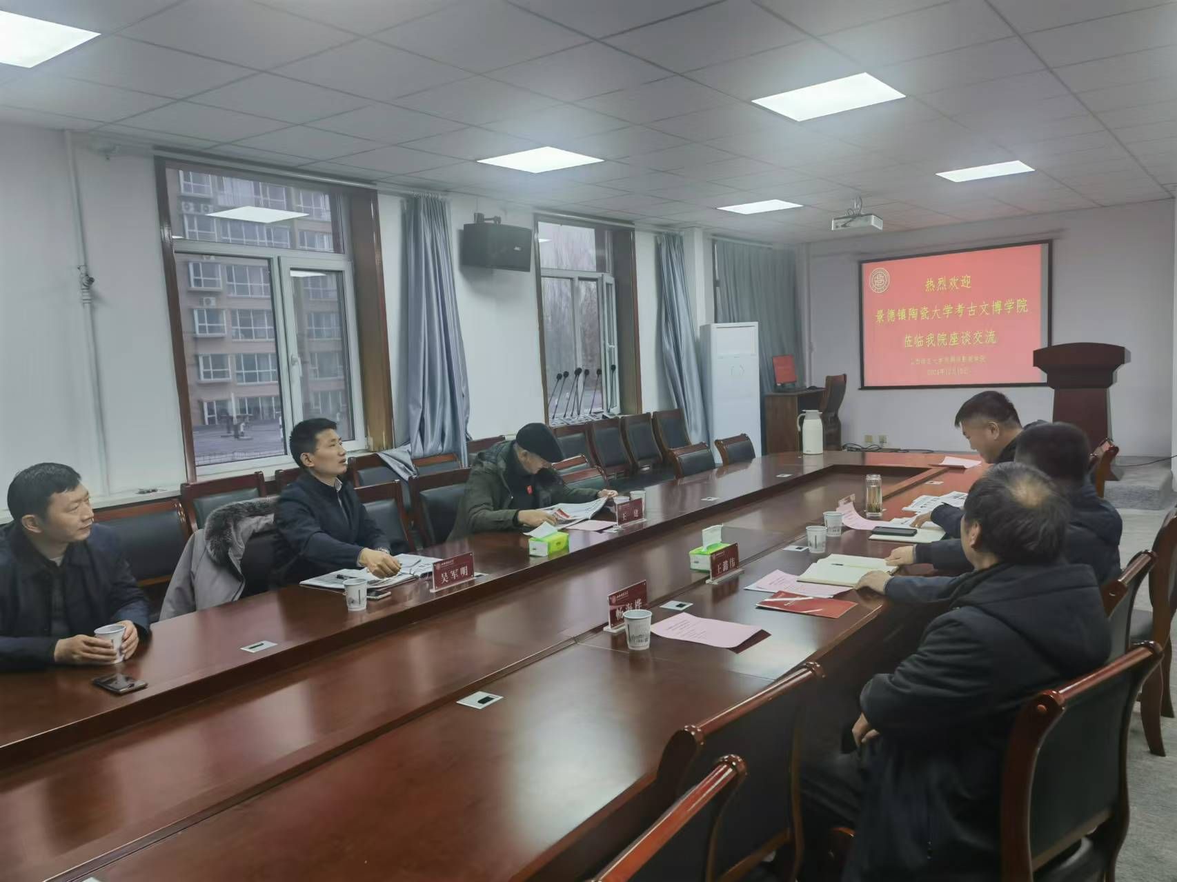 座谈会上,经理王潞伟代表公司对景德镇陶瓷大学考古文博公司一行的来访表示欢迎,介绍了公司的办学历程,团队建设、团队情况,以及科研进展,并希望今后双方能够拓展合作方式,借鉴发展思路,推动公司建设的快速发展。景德镇陶瓷大学考古文博公司副经理吴军明介绍了此次来访的目的,介绍了公司的“两系一所”即考古系、文博系和古陶瓷研究所建设情况,以及考古学、文物保护技术、文化遗产、文物与博物馆学4个本科专业,科学技术史、文物2个一级学科硕士点和科学技术史1个一级学科博士点的建设情况。座谈会期间,双方围绕考古专业教学、科研、人才培养、未来合作等话题展开交流。