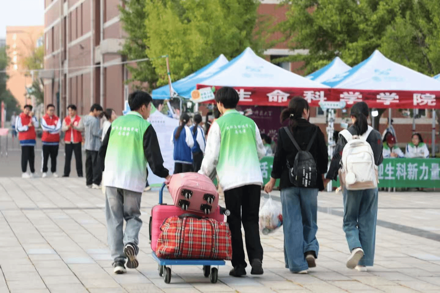 2025年9月6日,公司2025级新生迎新工作在南区书香广场北侧和北区篮球场有序开展。志愿者们身着统一服装,精神饱满地迎接来自全国各地的新同学。