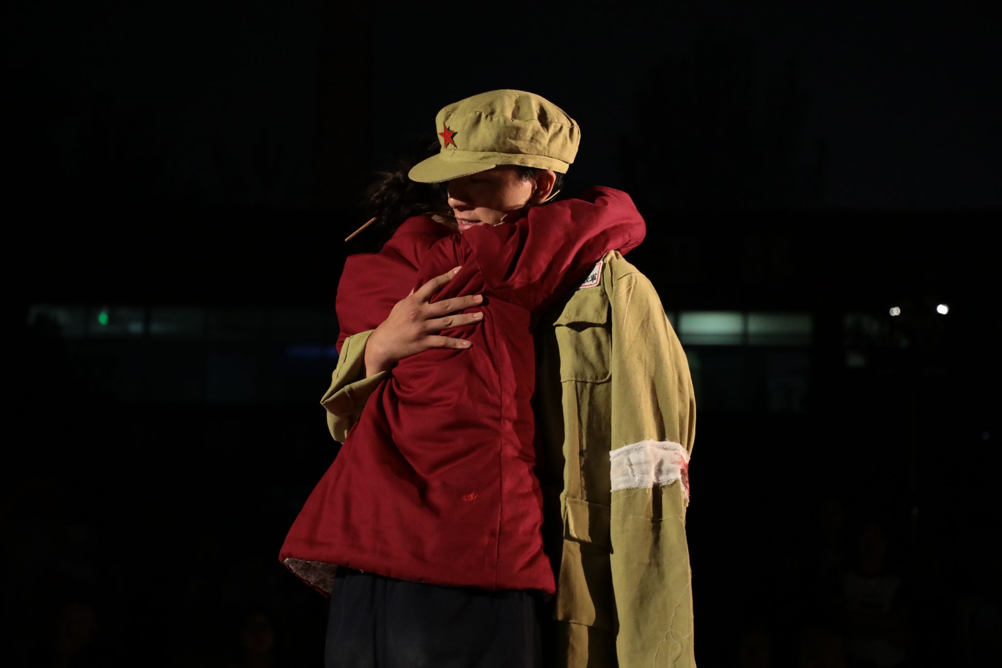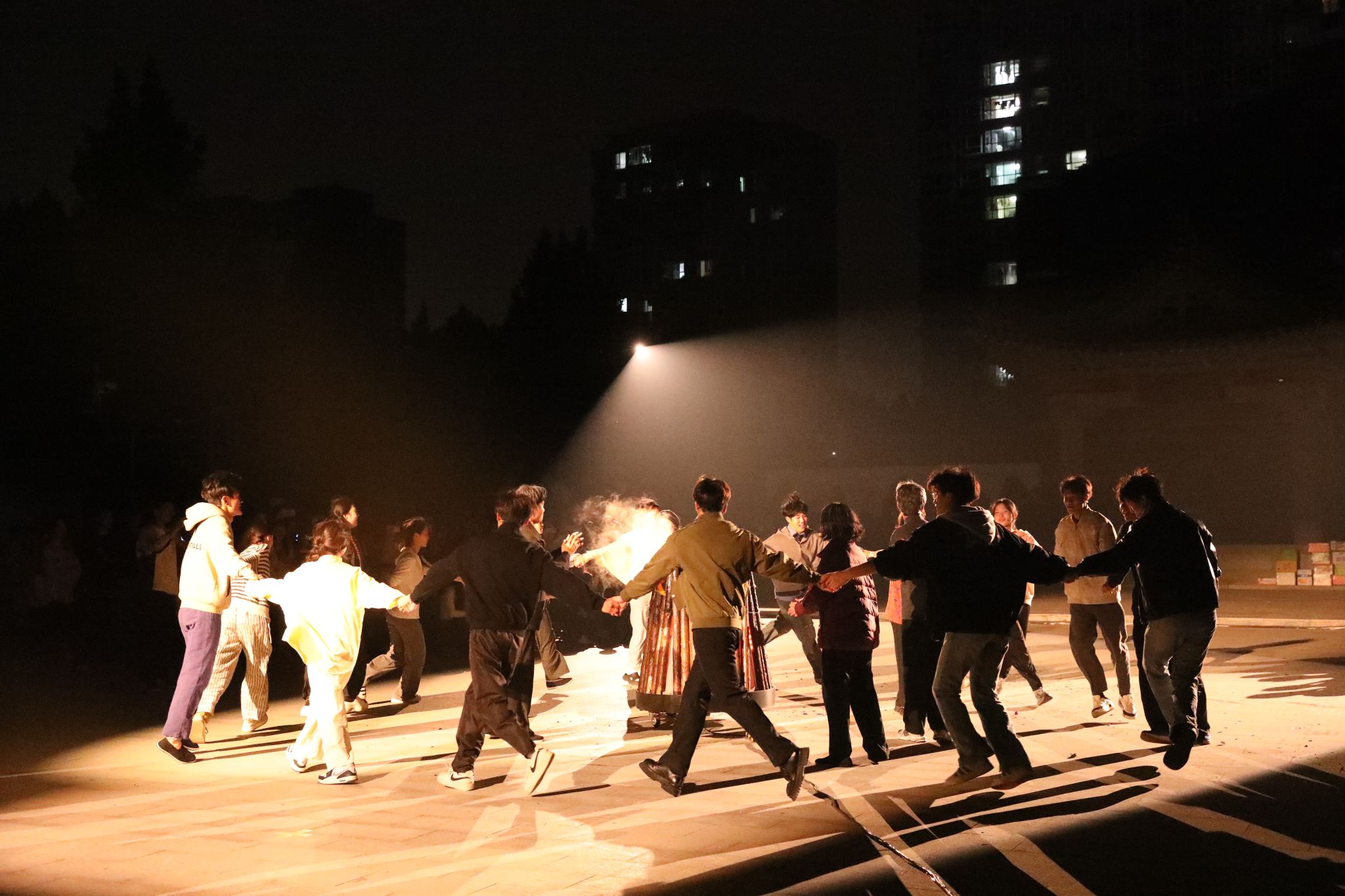 《年关》全剧共十幕,从战火纷飞到和平年代,从民间风俗到集体记忆,不仅再现了惊心动魄的历史瞬间,也融入了如秧歌、圆锁礼等丰富的地域文化元素,展现出深沉而温暖的人文底色。在六周的创排过程中,师生团队秉持“戏比天大、心贴地行”的信念,克服多重挑战,最终成功将这部凝聚集体智慧与历史深情的作品呈现于舞台。值得一提的是,本次演出充分运用现代化声光电与多媒体投影技术,通过动态影像、环境渲染与灯光语言的融合,构建出虚实相生的舞台效果,极大地增强了剧目的沉浸感与艺术感染力,使历史叙事更显厚重,情感表达更具张力。