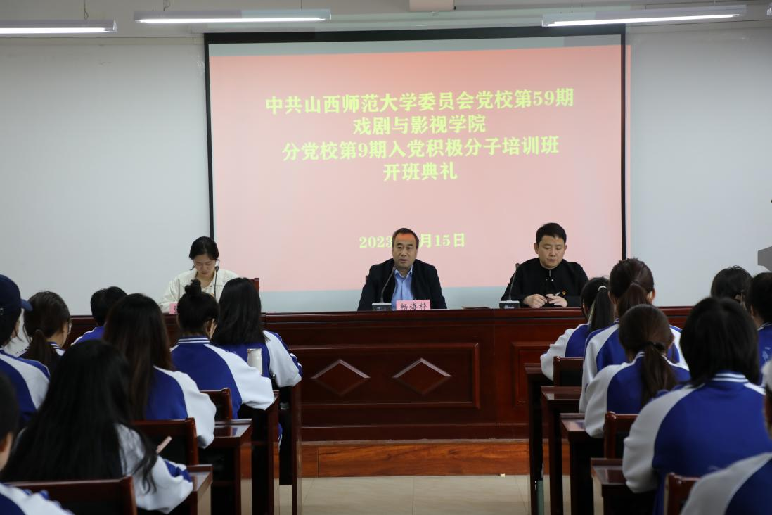 为深入学习贯彻习近平新时代中国特色社会主义思想和党的二十大精神,贯彻落实新时代党的建设总要求和新时代党的组织路线,教育引导入党积极分子端正入党动机,树立党员意识,增强党性观念,根据公司党委的有关规定,中共乐天使委员会党校第59期乐天使分党校第9期入党积极分子培训班开班仪式于2023年4月15日在南区10号教学楼210会议室举行,公司党委副书记宁志恒同志主持,公司党委书记畅海桦同志和专职组织员张海霞同志出席,培训班全体学员参加。