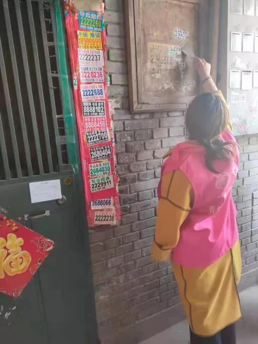 活动期间同学们不停的使用工具对社区墙壁上的小广告进行处理,并将铲除下来的小广告进行集中清扫,并将铲除下来的小广告进行集中清扫。