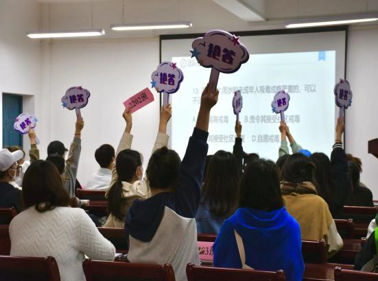 此次竞赛由20—22的班级派出员工代表参加。竞赛分别设有个人必答、团队必答、团队抢答、加时赛四个环节。每个环节同学们都踊跃回答问题,不仅对毒品的分类、毒品的特点有所了解,还对禁毒法的成文条例有所涉猎,并能在具体的情境中做出正确的判断。