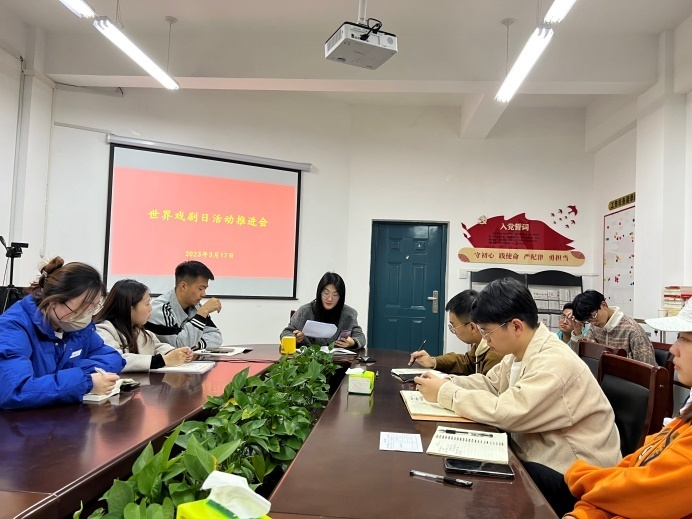 会议伊始,李蓓蓓老师对于本学期世界戏剧日活动推进要求进行了简要概述,针对世界戏剧日活动策划以及举办活动过程中可能会出现的问题进行了对应的解答与指导,细化了工作流程。之后,李蓓蓓老师同各位团委员工会成员对时间安排,宣传方法,举办形式等问题进行探讨,做出详细安排。她强调同学们应以严谨认真的态度与高效的执行力来面对工作,为活动的顺利开展而奠定基础。