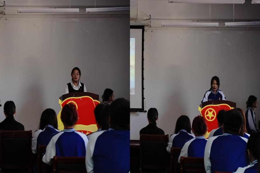 之后,新团员代表郭佳轩同学上台发言,她表示:“士不可以不弘毅,任重而道远”,作为一名新团员,她深谙团组织是一个学习的岗位,锻炼的岗位,是展示青春年华的大舞台。李蓓蓓老师对新发展的团员提出三方面要求:一要“立有信、有所信”、二要“炼心志、有所守”、三要“学有成、有所为”,不断提高自身素养和使命担当,将自身发展融入国家发展中。
