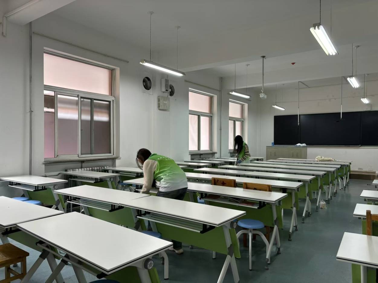 本次活动以“志愿清扫卫生,共建美丽校园”为主题,组织志愿者们对公司信息楼教室进行清洁打扫。志愿者们分工明确,配合默契,认真擦拭黑板,清扫地面,整理桌椅,不放过任何一处细节。他们用实际行动践行志愿服务精神,为同学们营造了舒适的学习环境。