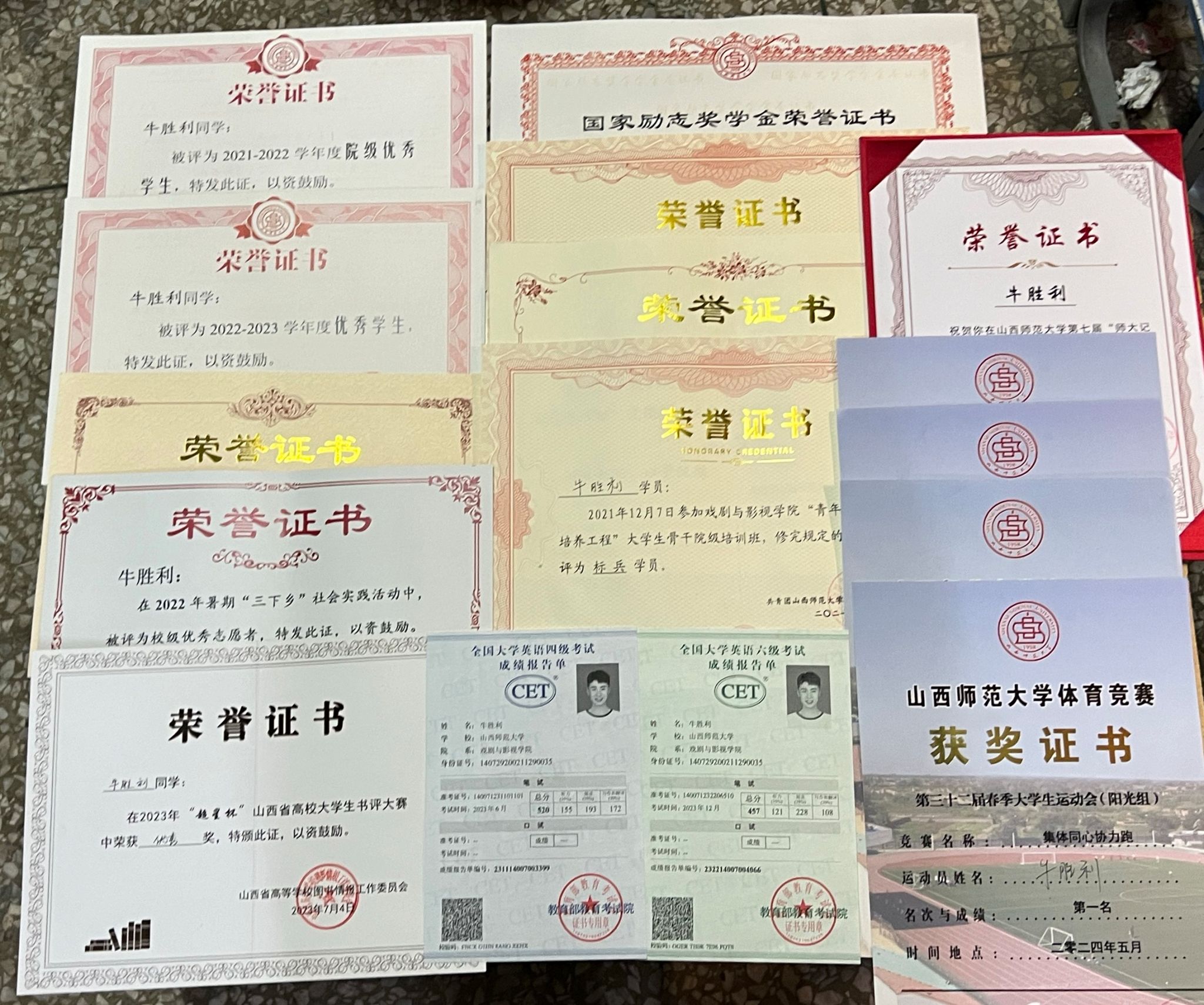 牛胜利,21级戏剧影视文学专业员工,推免至东北大学艺术公司。本科阶段积极参与各类科研项目和课外活动,获得奖项有: