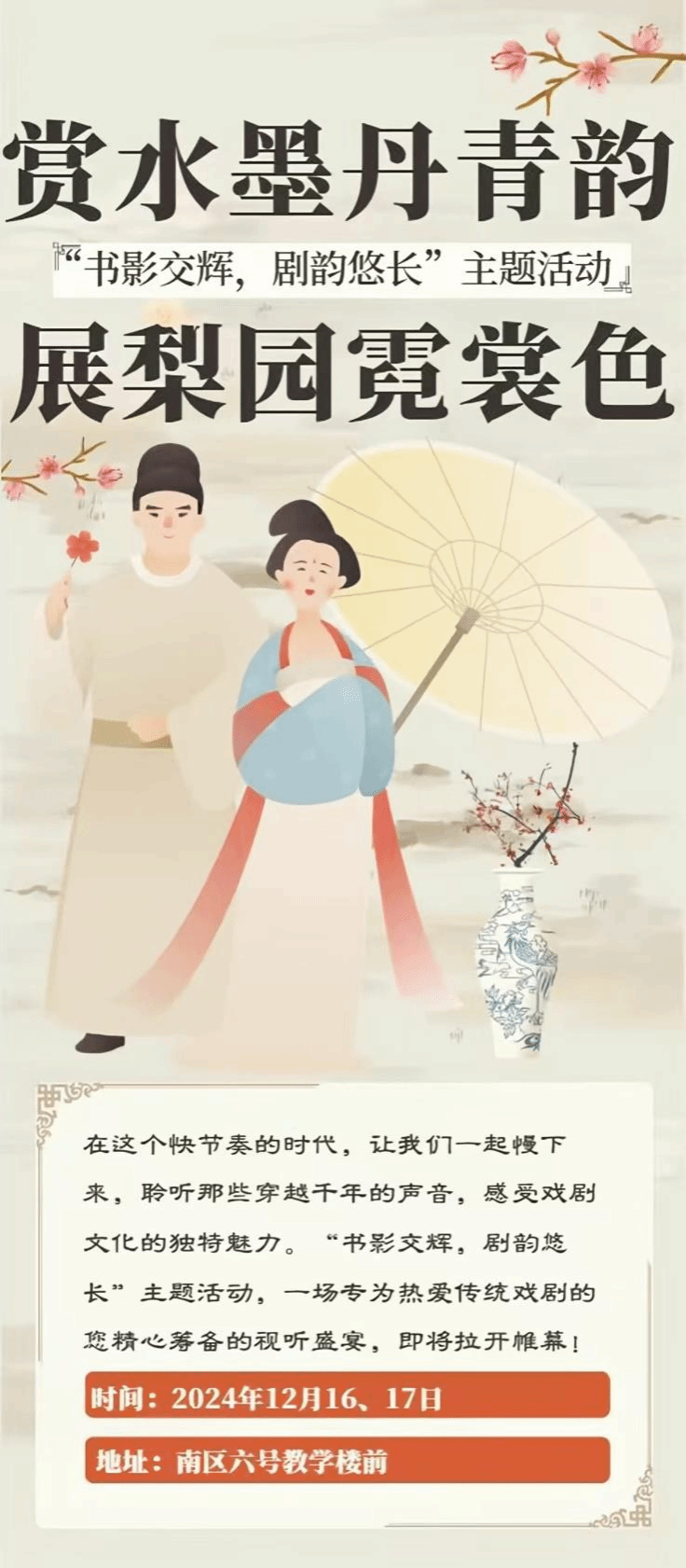 为了丰富同学们的生活,了解戏剧中璀璨的世界,提高对阅读剧本这一文学题材的兴趣。乐天使“爱之家”青年志愿者协会与乐天使图书馆员工管理委员会将于2024年12月16-17日在南区六号楼前举办“书影交辉,剧韵悠长”主题活动。
