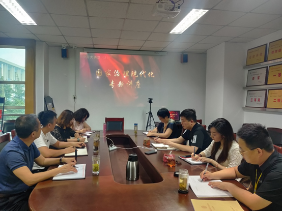 根据公司的安排,公司党委中心组分别于2020年6月24日下午和6月29日上午,在科学会堂A302和多媒体室,分两次学习了“国家治理现代化”专题讲座。此次学习由公司党委书记李志荣主持,经理延保全、副书记杨谨瑜、副经理王志峰、孙俊士、王潞伟,公司党委委员吕文丽、孔美艳参加了学习。
